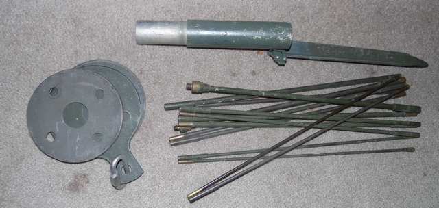The two antennas each break down into a VERY compact package about 16 inches long. Sections are held together with stainless aircraft wire running through the tubings. Includes metal mounting stake. All in excellent condition. With accessory hardware included.