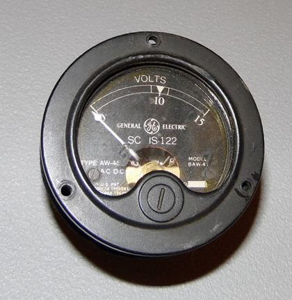 This is a 0 to 15V DC meter by General Electric in excellent working condition.