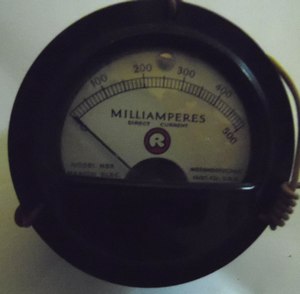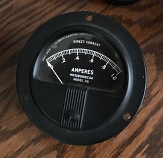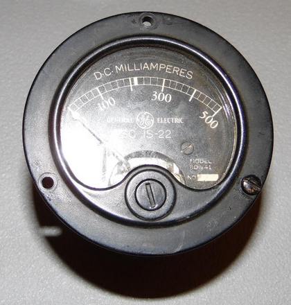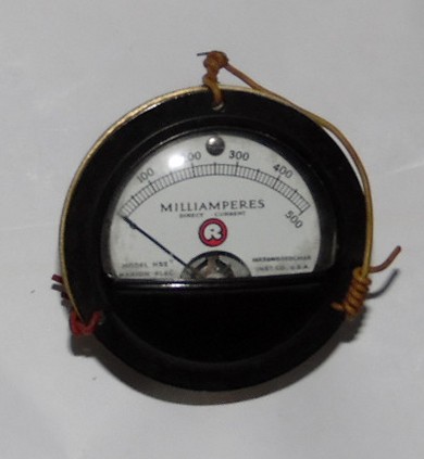 Here is a nice round 500 mA DC panel meter by Marion Electric. Wire will be removed.