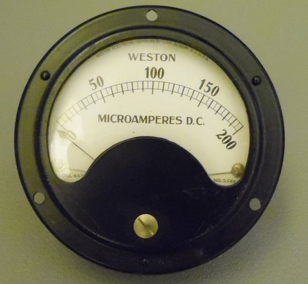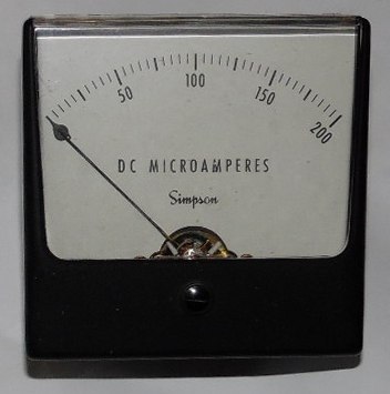 Here is an excellent looking Simpson panel meter for 0 - 200 uA DC. Works fine, looks good. Great for many a project.