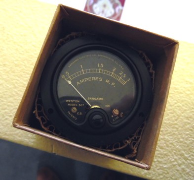 Here is a beautiful, new in box Sangamo Electric (IL) 0 - 3 Amperes RF Panel Meter. Great for radio transmitter monitoring and antenna current measurements.