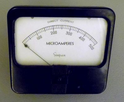 Center-zero meter, marked as 5 Amps. Was originally microamps.