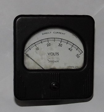 Here is an excellent Simpson square style panel meter for 0 - 50V DC. It is in ecellent working condition. Great for any DC voltage measuring application.