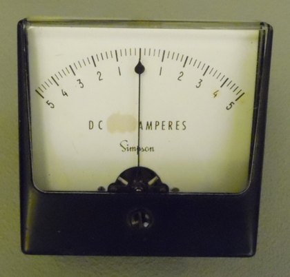 Here is a Simpson Panel meter marked for -5A to +5A with center zero. May be intended for use with a shunt as it was originally a -5mA to + 5mA DC meter. You sort it out! Great for scientific applications.