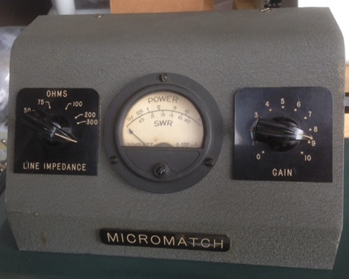 Great little meter from the 1970s with adjustments for forward gain, relative power and SWR meter readings. There are two connectors for typical PL259 plugs as found on coax ham transmission lines. 'Scratchy' adjustments. Needs potentiometers and switches cleaned or replaced.