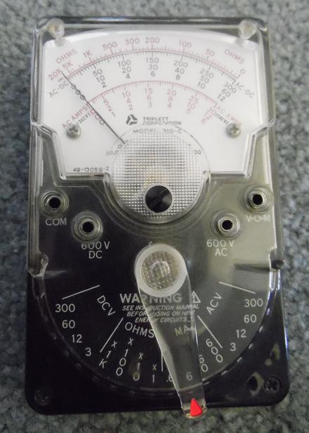 Classic USA made Triplett multimeter. This is a mid-sized, handy meter. You can see all the ranges. A real beauty. See Clamp-on adapter below for higher current readings. Excellent condition.