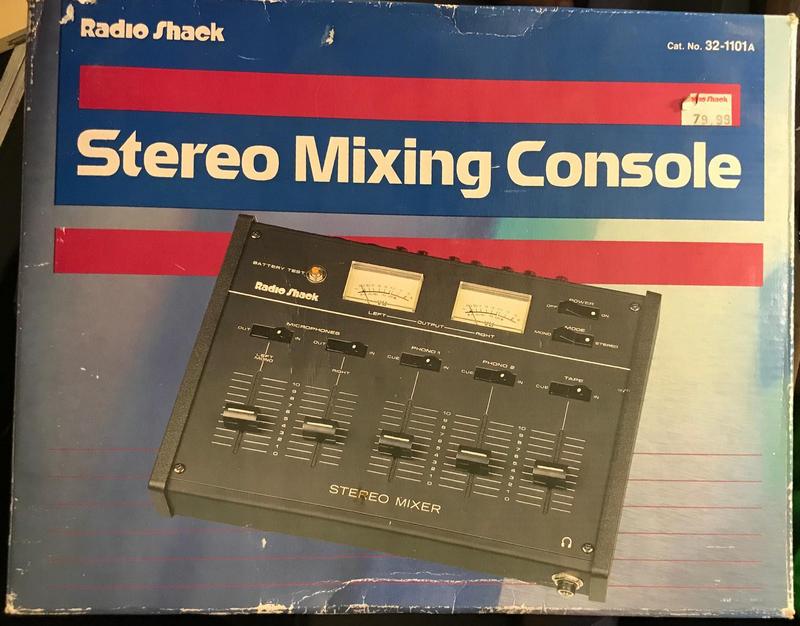 Here is a great Radio Shack 5 Channel Stereo Mixer. Looks new. Ideal for AM stations or Radio DJ work. Has two microphone inputs, two phono inputs and a line level tape / AUX input. Comes with he original box and the operating manual. Appears to be new and unused. Sold new for $79.95 and available now for $32.00 plus shipping. (USA only.)