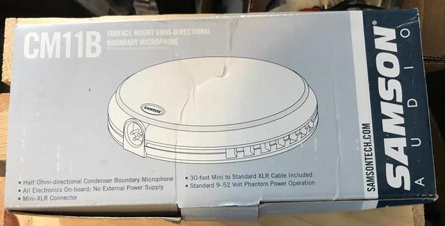 Here is a new, in the box, Samson omni-directional microphone. Great for picking up conferences, recording, or other live events. Many different applications for this. XLR connection and 30 ft. cable included. Brand new.