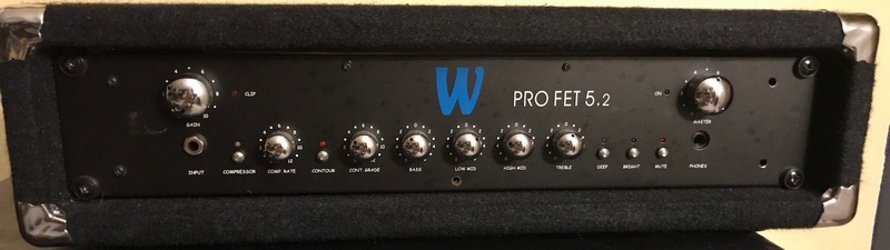 This Warwick ProFET 5.2 Bass Guitar amplifier can easily produce 500 watts into 4 ohms or 300 watts into 8 ohms. It is a real work horse. Good condition. Everything works perfectly. Cosmetically it is simply missing a scouple of screws. Easy fix. 120V AC operation. Paid $550.00 new. Worth about $250 - $350 used.