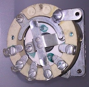 These are new, high-voltage bandswitches with 6 positions, one pole. Construction is of heavy ceramic with wide spacing so that they can handle high voltages as found in larger transmitters and linear amplifiers.